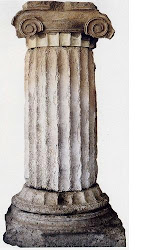 § La columna va dotada de basa. Se trata de una pieza de apoyo compuesta por tres molduras: dos boceles circulares o medios toros y una escocia intercalada entre ambos. En ocasiones, esta basa apoya a su vez sobre un plinto, pieza prismática de planta cuadrada de poco espesor.